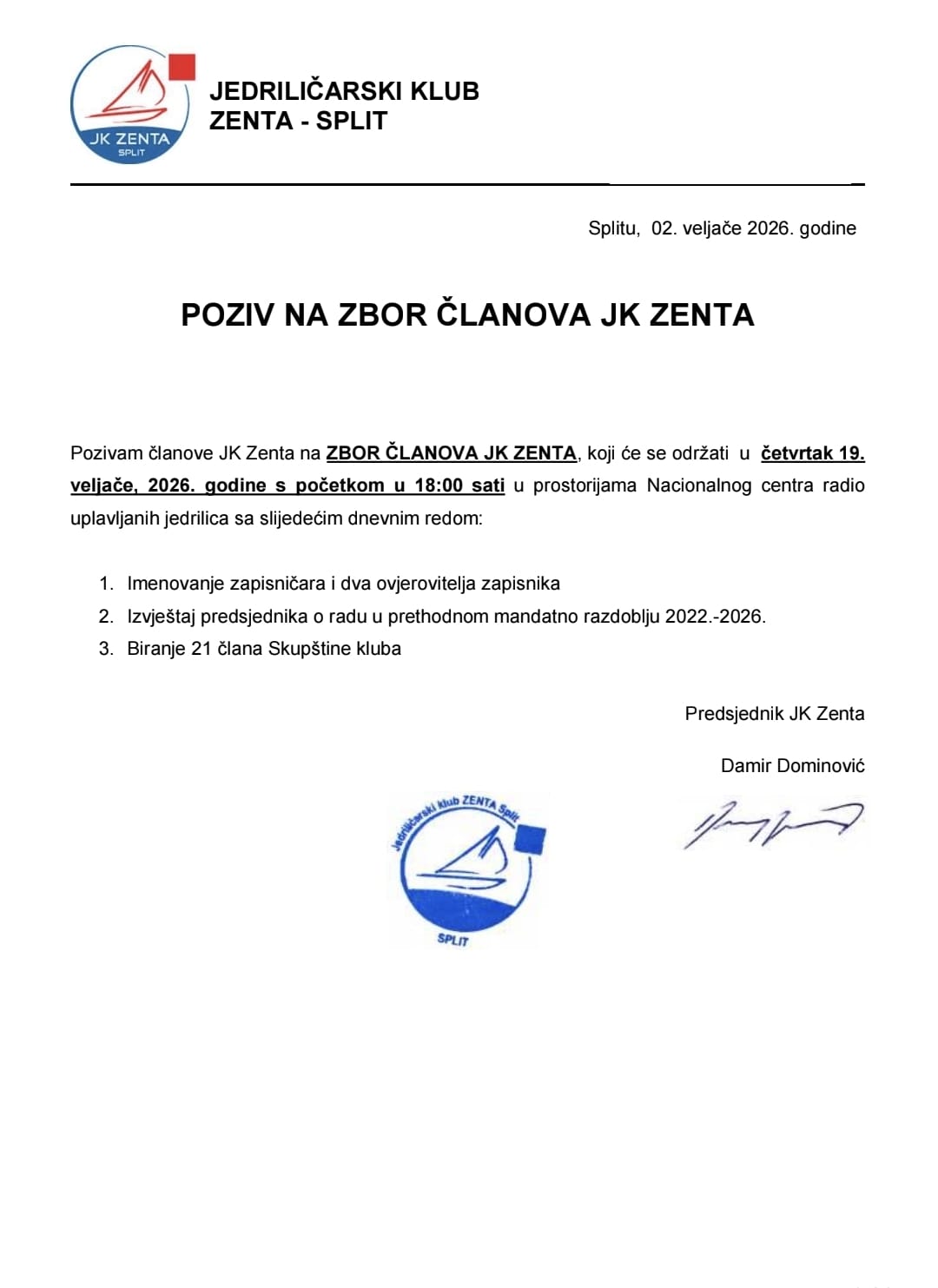 Dragi jedriličari 3.svibnja u organizaciji našeg kluba će se održati regata krstaša Sv. Duje na ruti Zenta-Institut-Duilovo-Zenta.